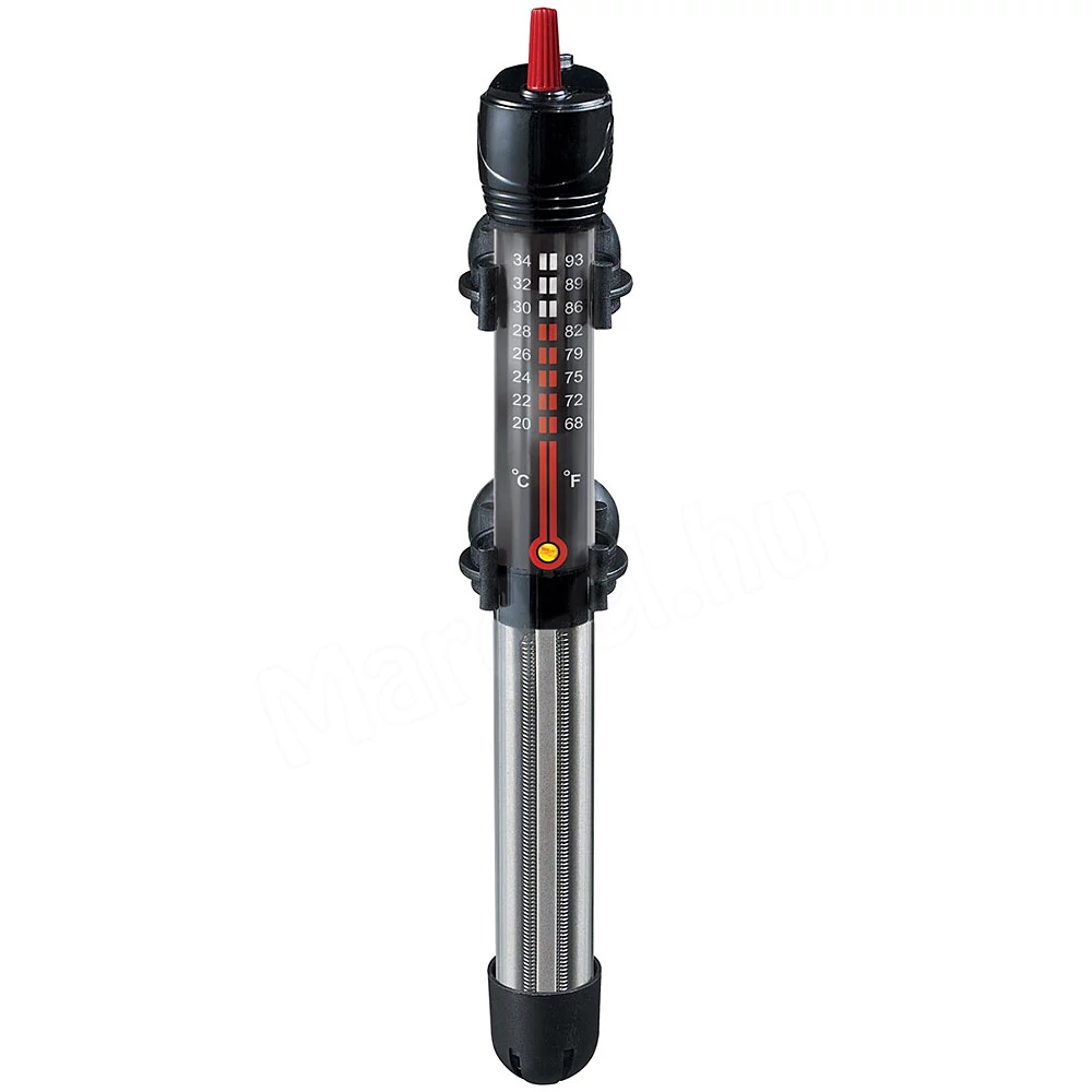 Precíz bimetál érzékelővel ellátott akvárium fűtő. A beállított értéken tartja az akváriumvíz hőmérsékletét. Könnyen beállítható a kívánt hőfok 20 és 34°C között, a jól látható skála segítségével. Teljesen vízálló, biztonságos eszköz. Teljesítménye 50W; 25-50 literes akváriumhoz ajánlott; 23cm hosszú.
